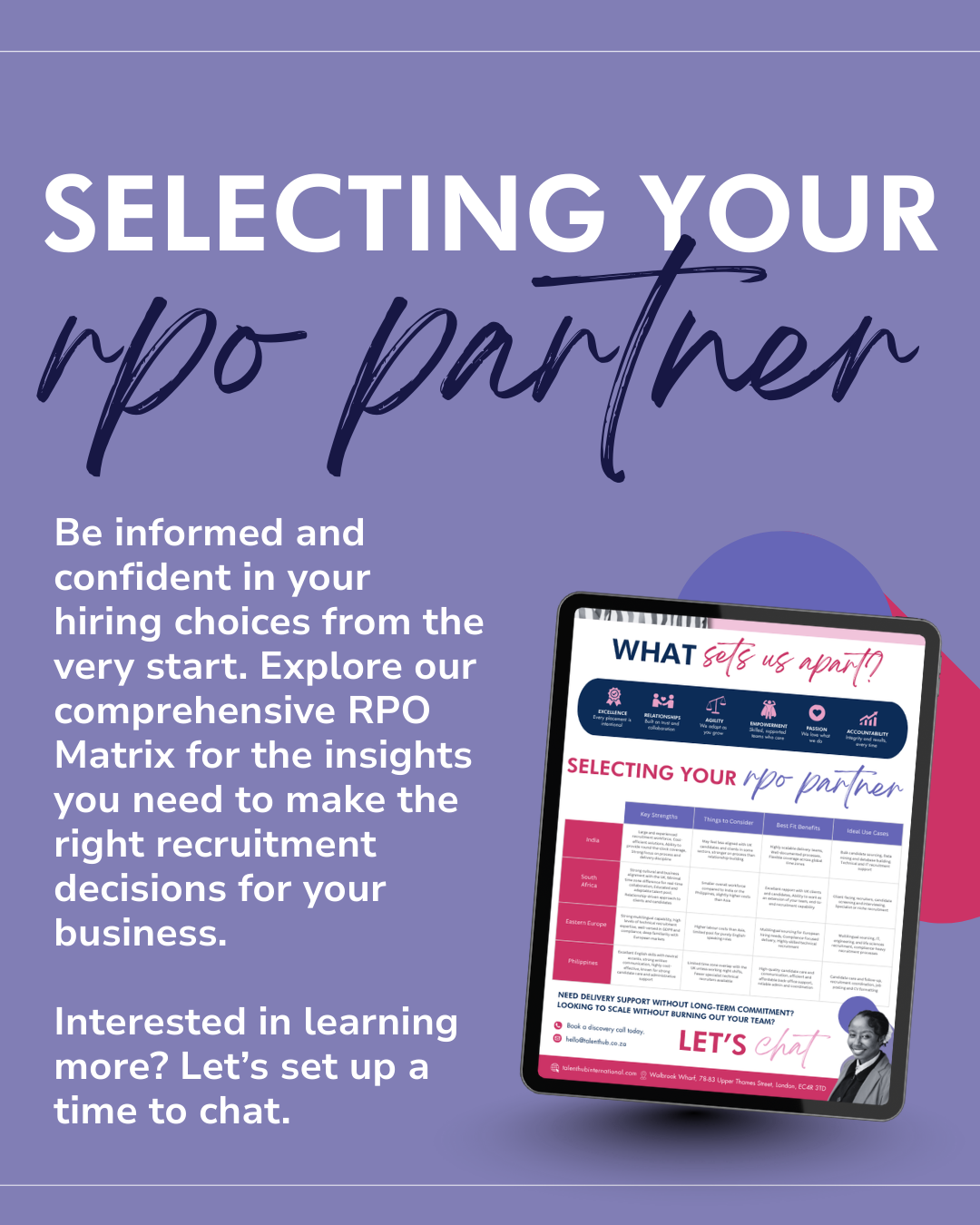 Be informed and confident in your hiring choices from the very start. Explore our comprehensive RPO Matrix for the insights you need to make the right recruitment decisions for your business.